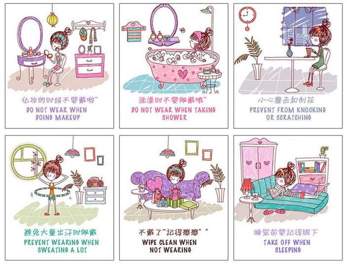 - DO NOT contact with chemicals – jewelry is easily damaged in aroma bath, sea salt bath or spa.